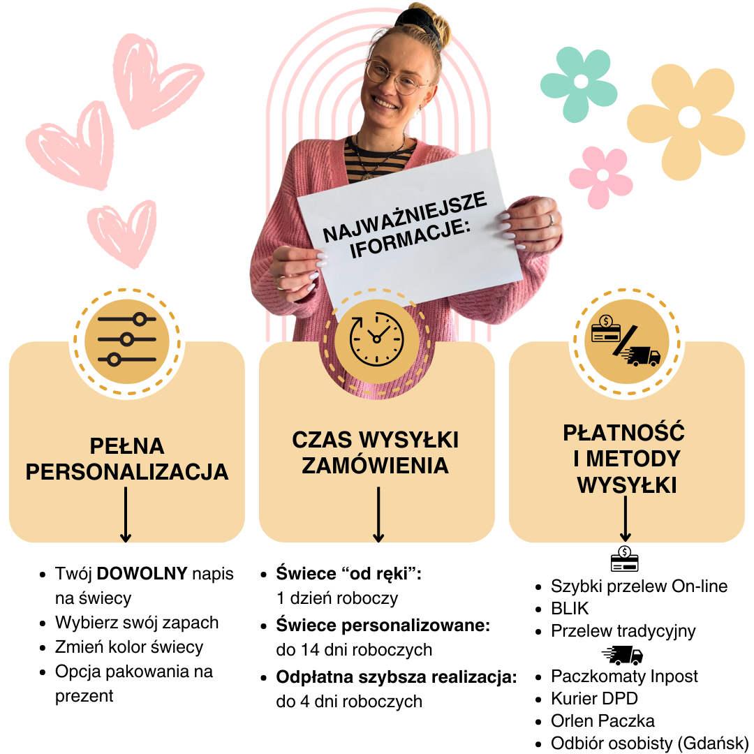 Niezależnie od okazji – urodziny, rocznica, święta czy podziękowanie – dzięki personalizacji stworzysz świecę, która będzie idealnym prezentem, pełnym znaczenia i indywidualnego charakteru.