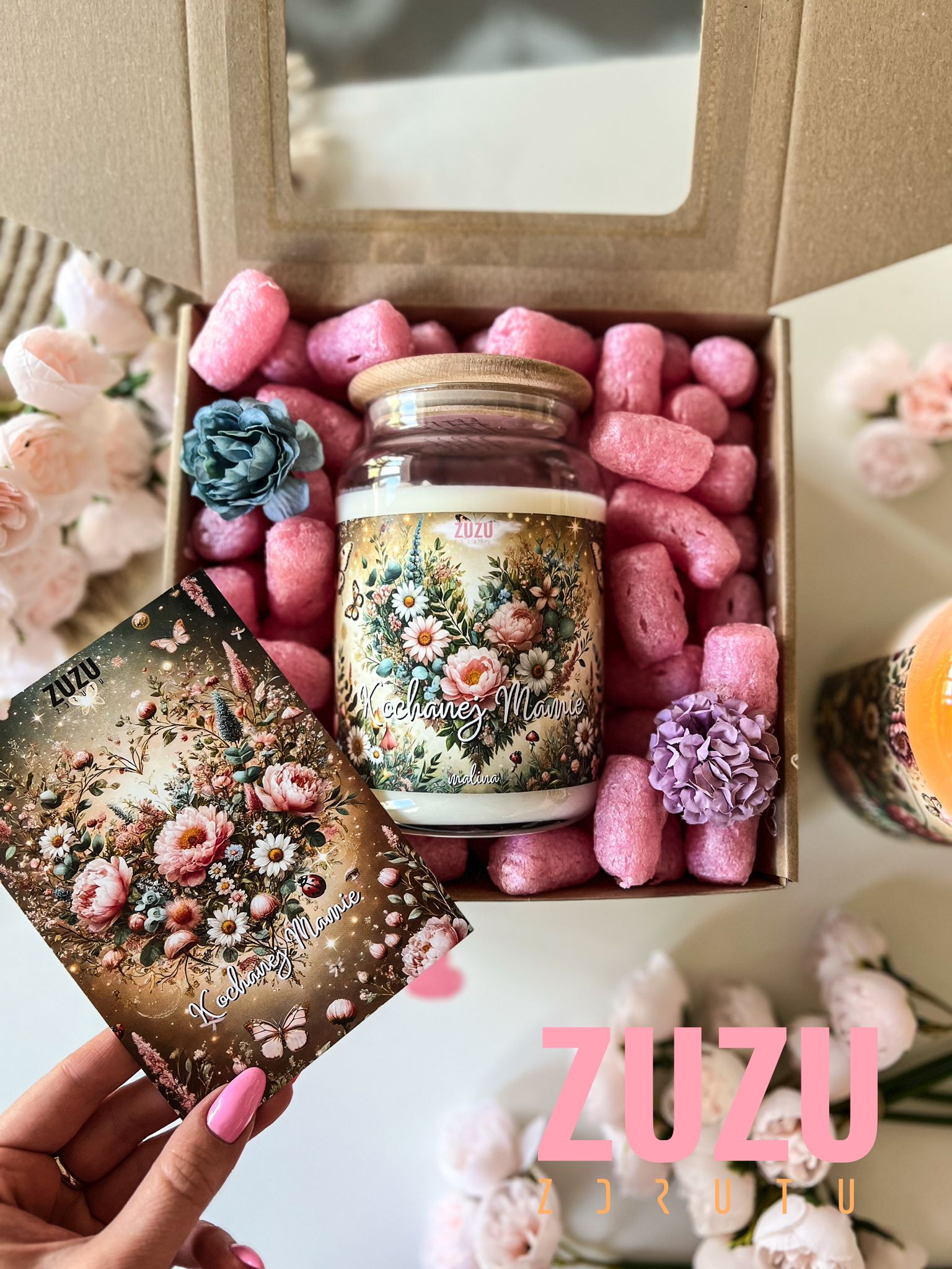 Podaruj swojej mamie prezent, który nie tylko zachwyca wyglądem, ale także wzrusza do łez. Box na Dzień Mamy to gotowy zestaw, który sprawi, że ten wyjątkowy dzień stanie się jeszcze bardziej niezapomniany. W środku znajduje się duża, ręcznie robiona świeca sojowa z pokrywką, wykonana z 680 g naturalnego wosku. Jej zapach to soczysta malina – intensywna, słodka i otulająca, dlatego idealnie sprawdza się jako prezent dla najważniejszej osoby w Twoim życiu.
