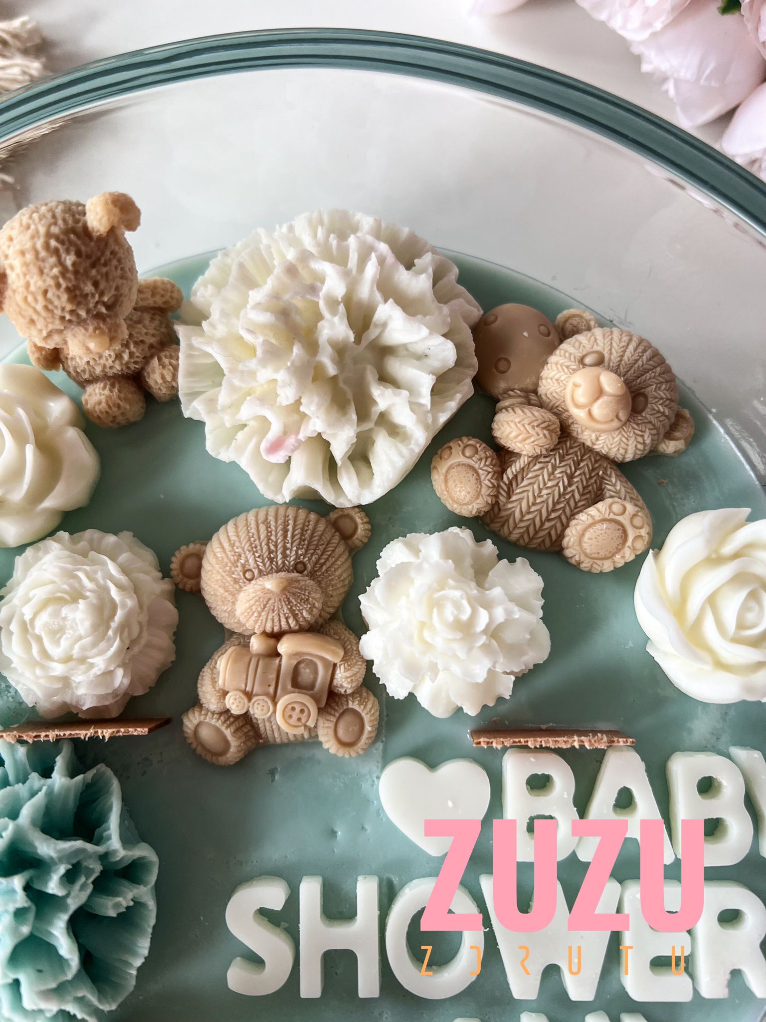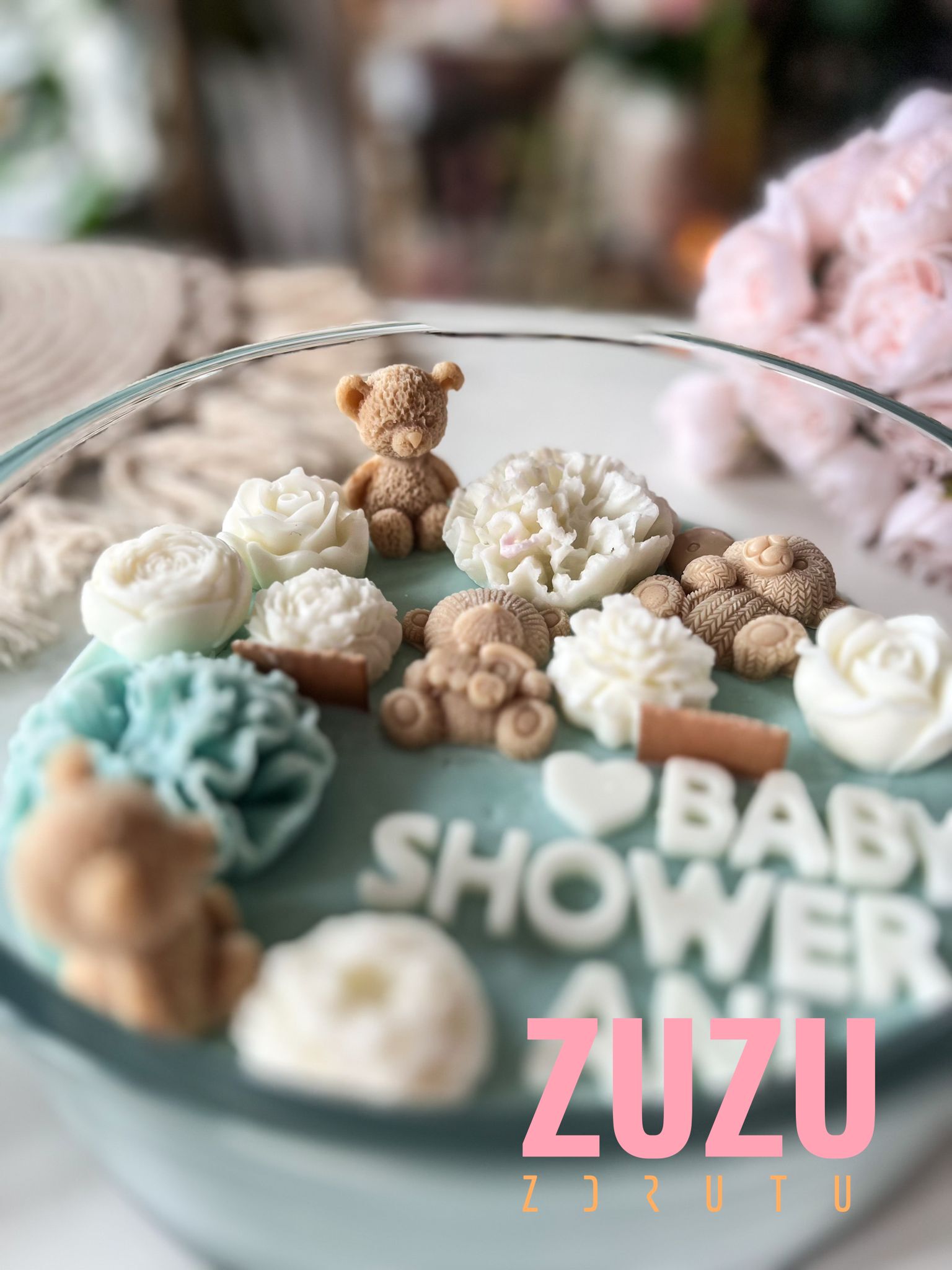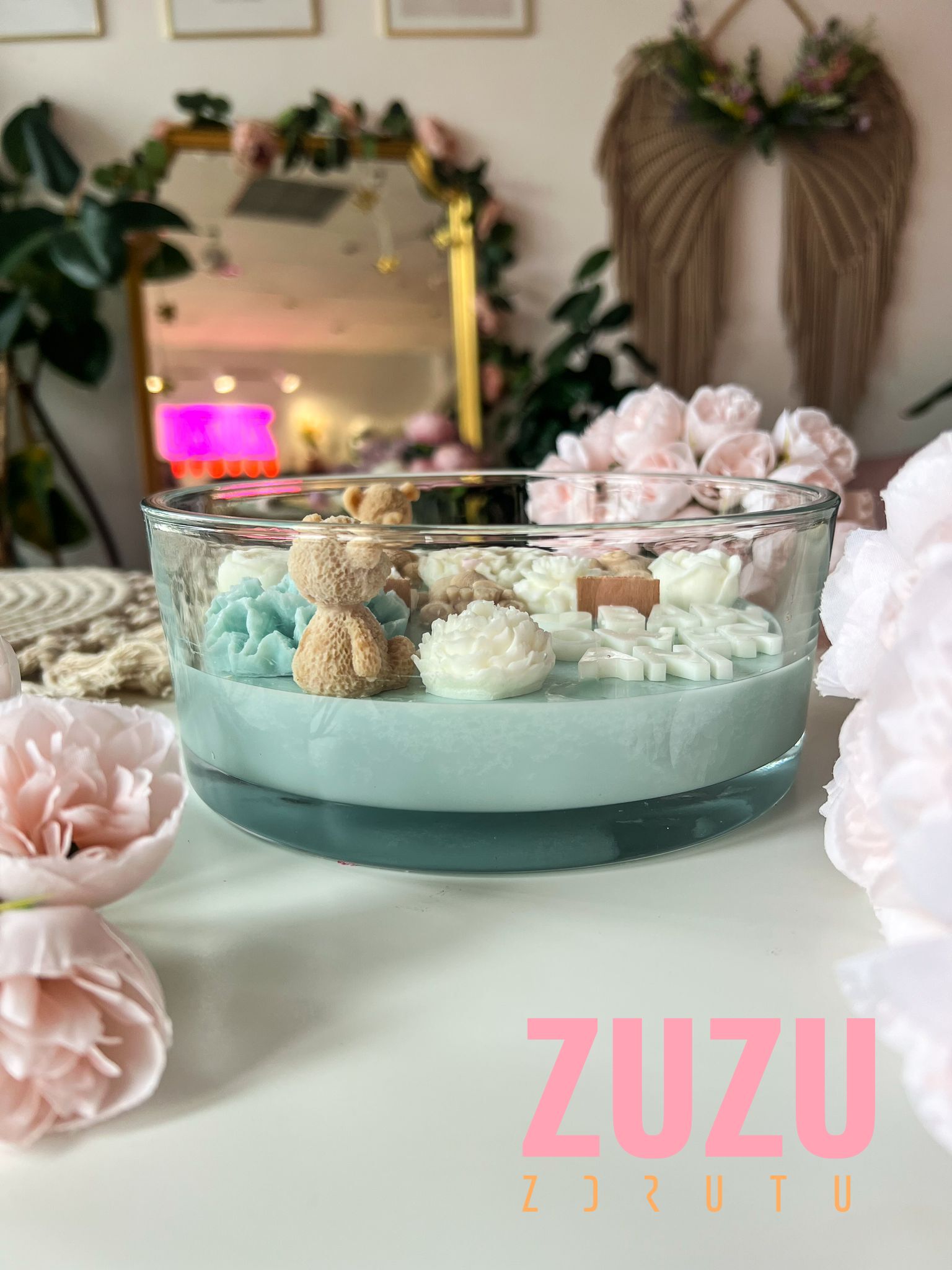 DUŻA ŚWIECA MISIE RÓŻ Z NAPISEM to ręcznie wykonana dekoracyjna świeca, która zachwyca uroczymi detalami i możliwością pełnej personalizacji. To idealny wybór na prezent dla przyszłej mamy, bliskiej przyjaciółki lub kogoś, komu chcesz podarować wyjątkowy symbol miłości i troski. Delikatne pastelowe barwy, misternie wykonane kwiaty i urocze misie sprawiają, że ta świeca staje się prawdziwym dziełem sztuki, które wzrusza i zachwyca.