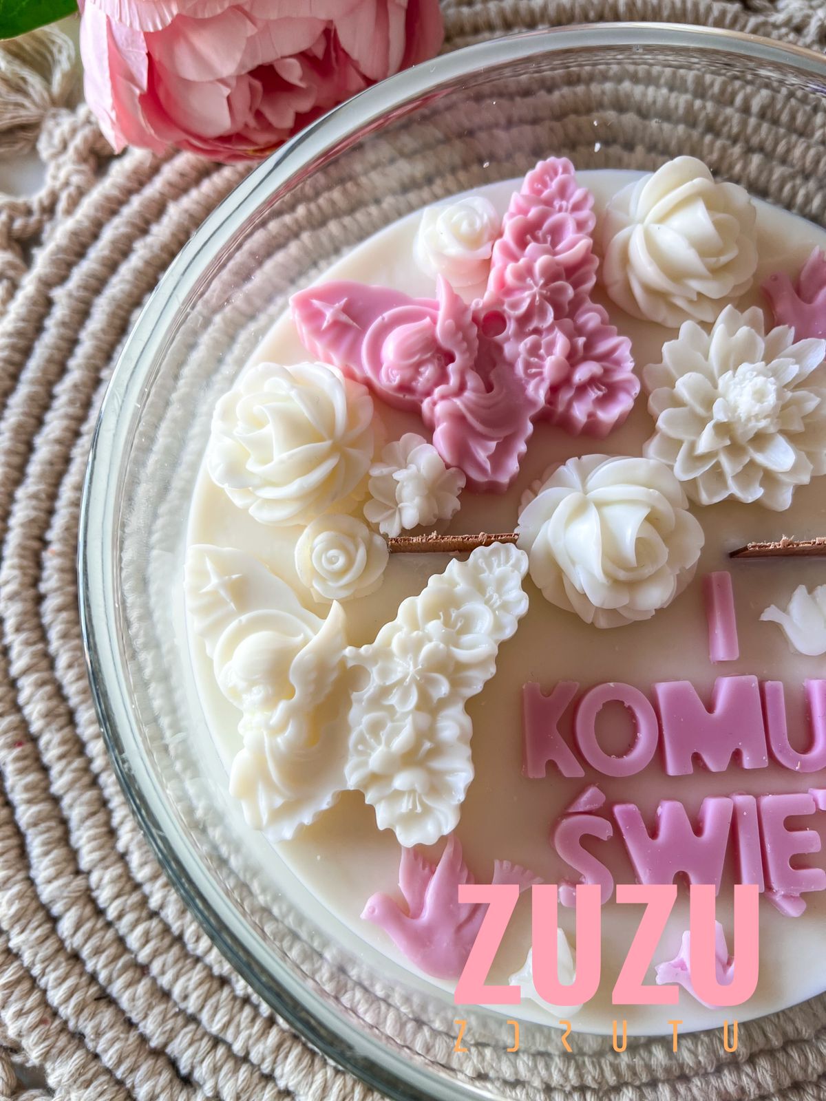 Ta świeca nie jest zwykłym upominkiem – to pamiątka, która pozostanie z obdarowaną osobą na lata. Starannie dobrane dekoracje podkreślają wyjątkowość tej chwili. Znajdziesz tu subtelne motywy religijne, delikatne kwiaty oraz gołębie symbolizujące czystość, miłość i duchowe odrodzenie. Całość tworzy elegancką kompozycję, która idealnie sprawdzi się jako prezent dla dziecka przyjmującego sakrament Pierwszej Komunii Świętej.