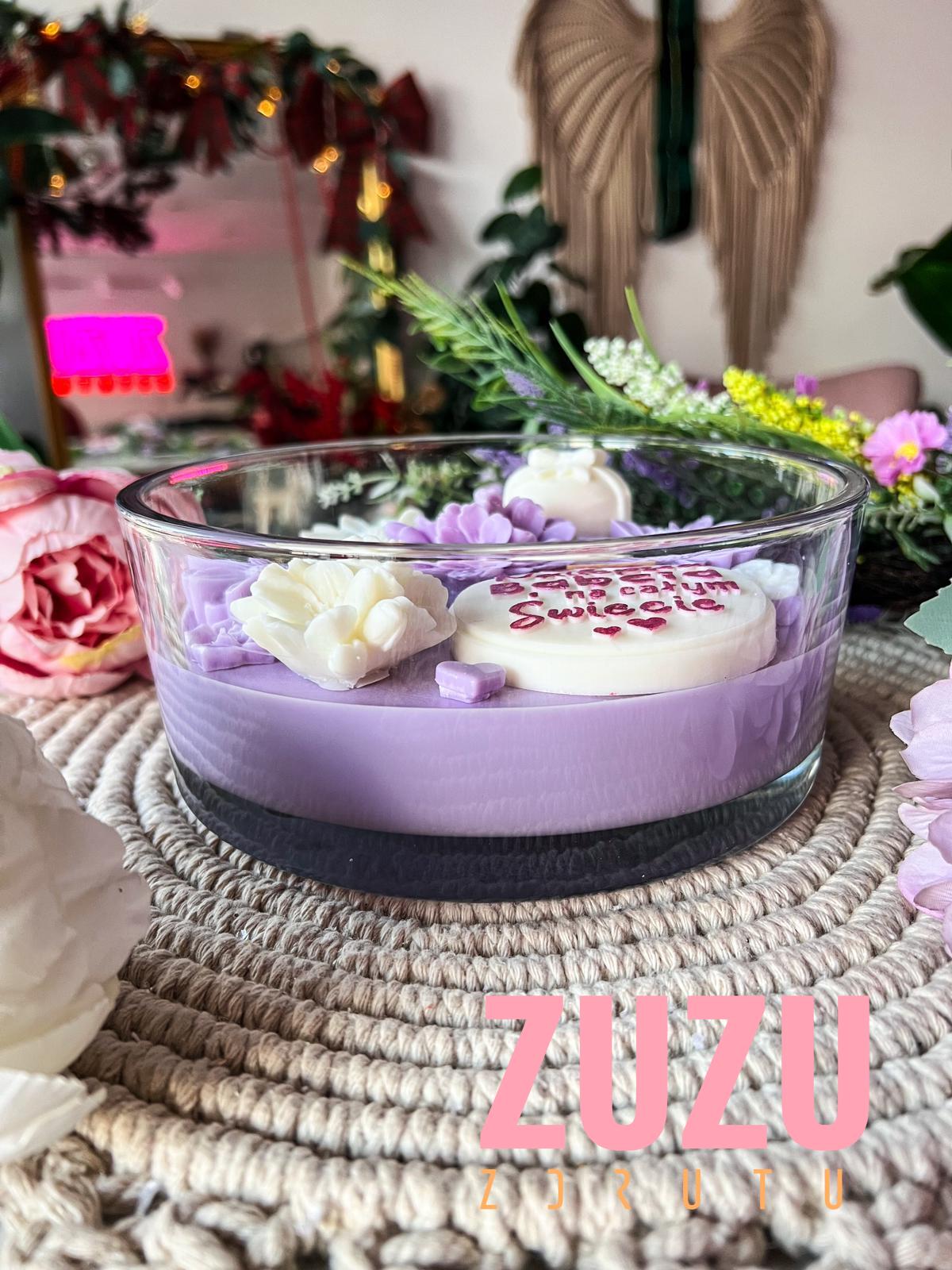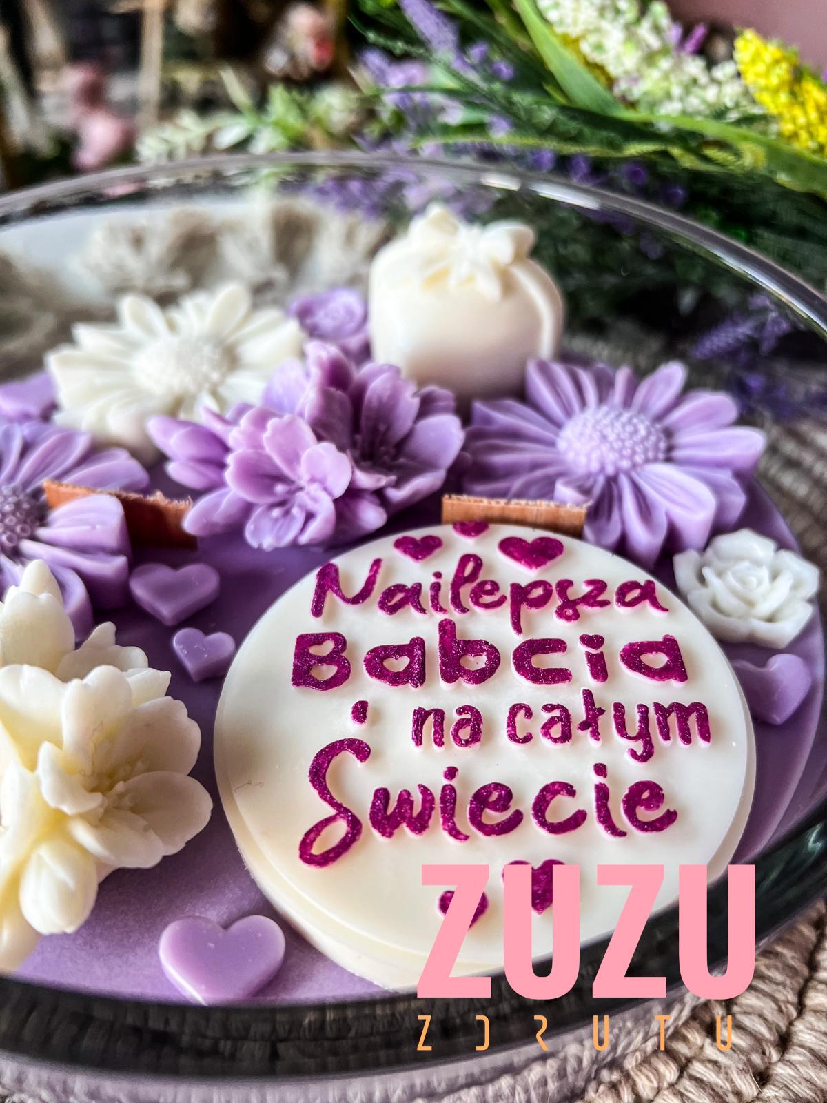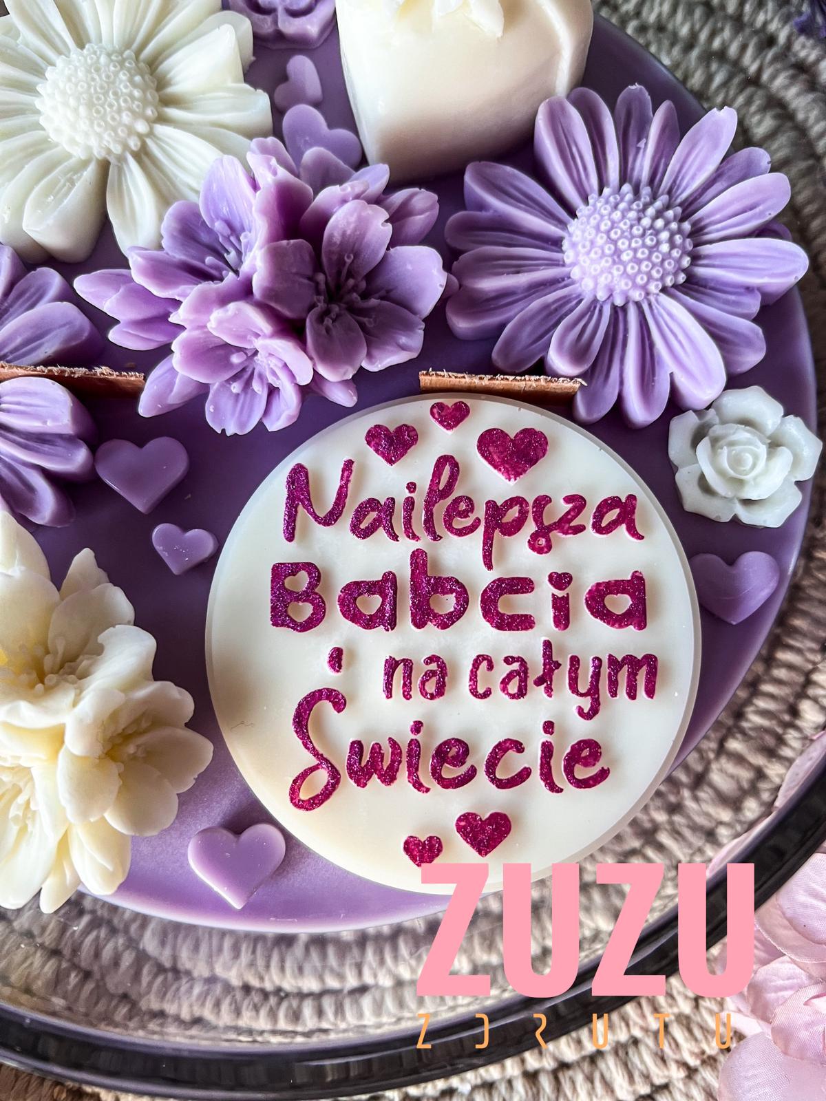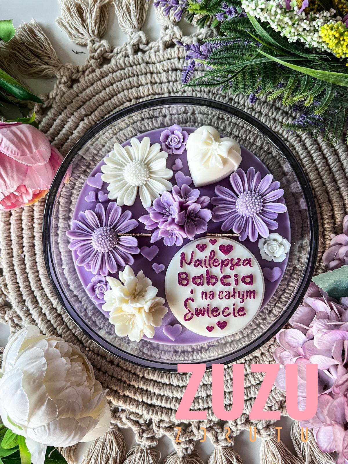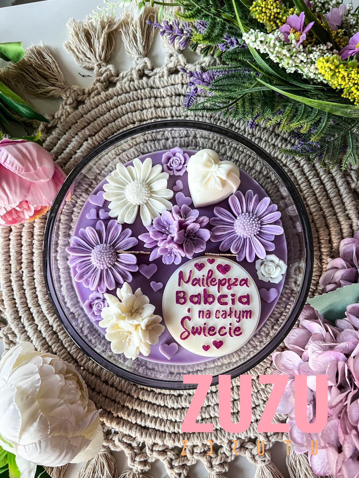 Ręcznie malowany napis „Najlepsza Babcia na całym Świecie” sprawia, że każda świeca jest jedyna w swoim rodzaju. Piękne, kwiatowe dekoracje w odcieniach bieli i fioletu dodają jej uroku, a eleganckie szkło nadaje świecy wyjątkowego charakteru. Taki prezent na Dzień Babci nie tylko zachwyca wyglądem, ale także wywołuje wzruszenie i radość.