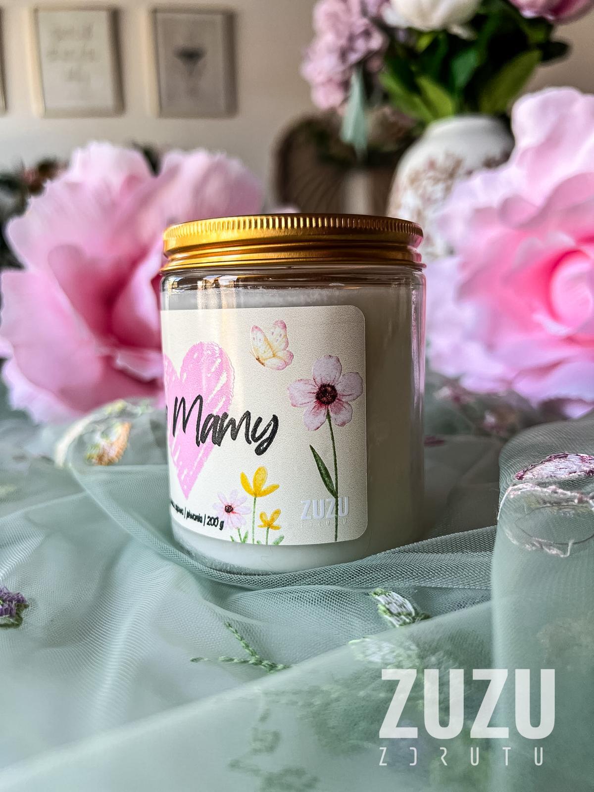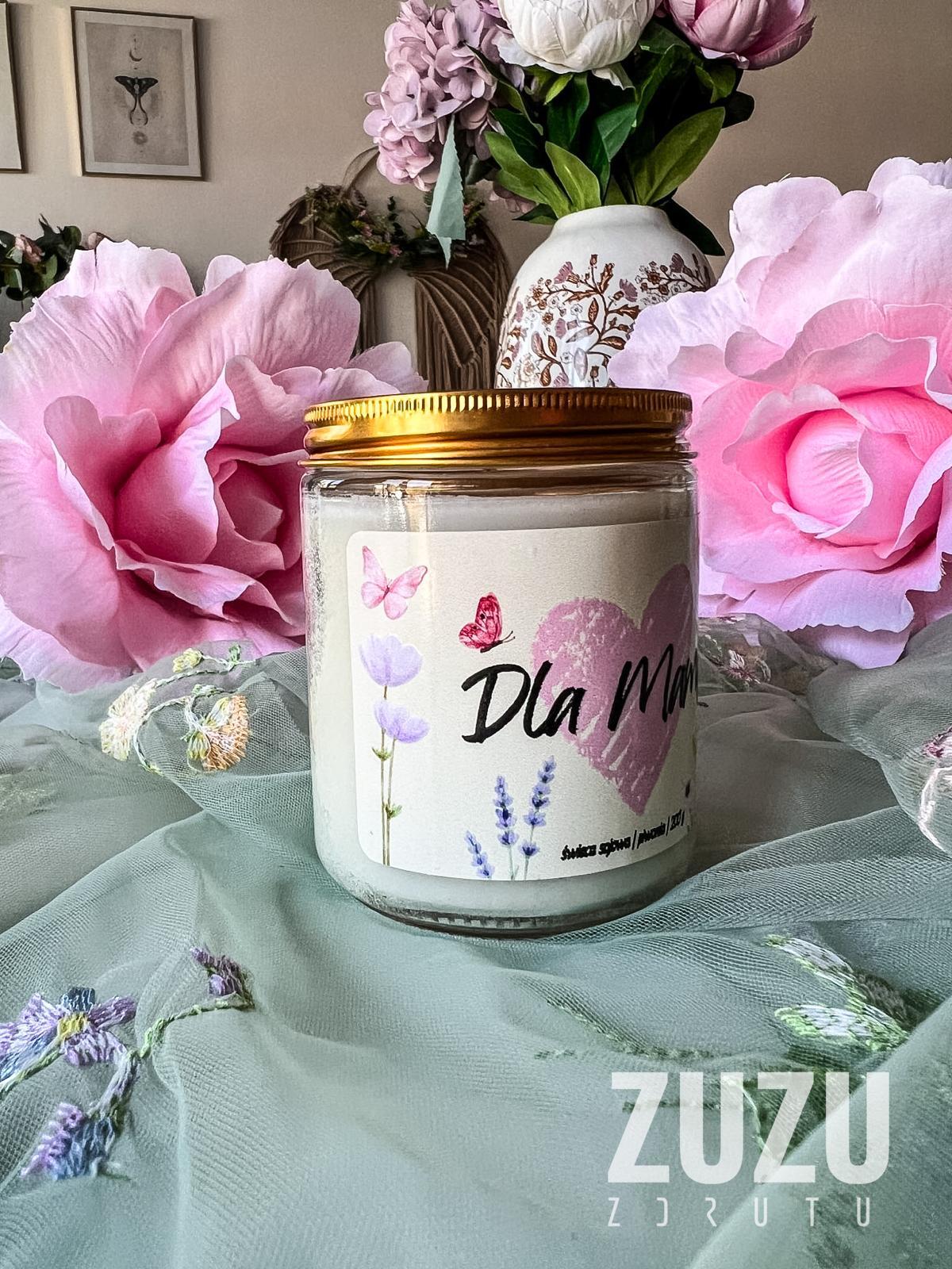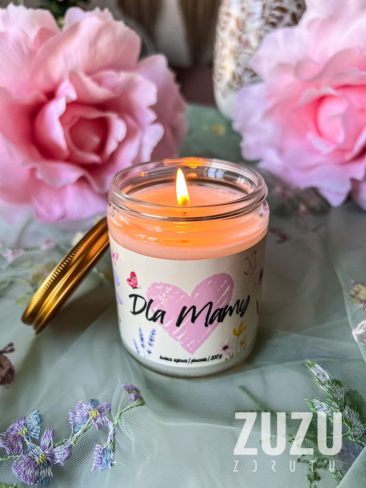 Ta świeca sojowa w słoiczku piwonia powstała z myślą o mamach, dlatego łączy elegancję, delikatność oraz wyjątkowy zapach. Już na pierwszy rzut oka przyciąga subtelna etykieta z sercem i napisem „Dla Mamy”, która nadaje całości wyjątkowego charakteru.