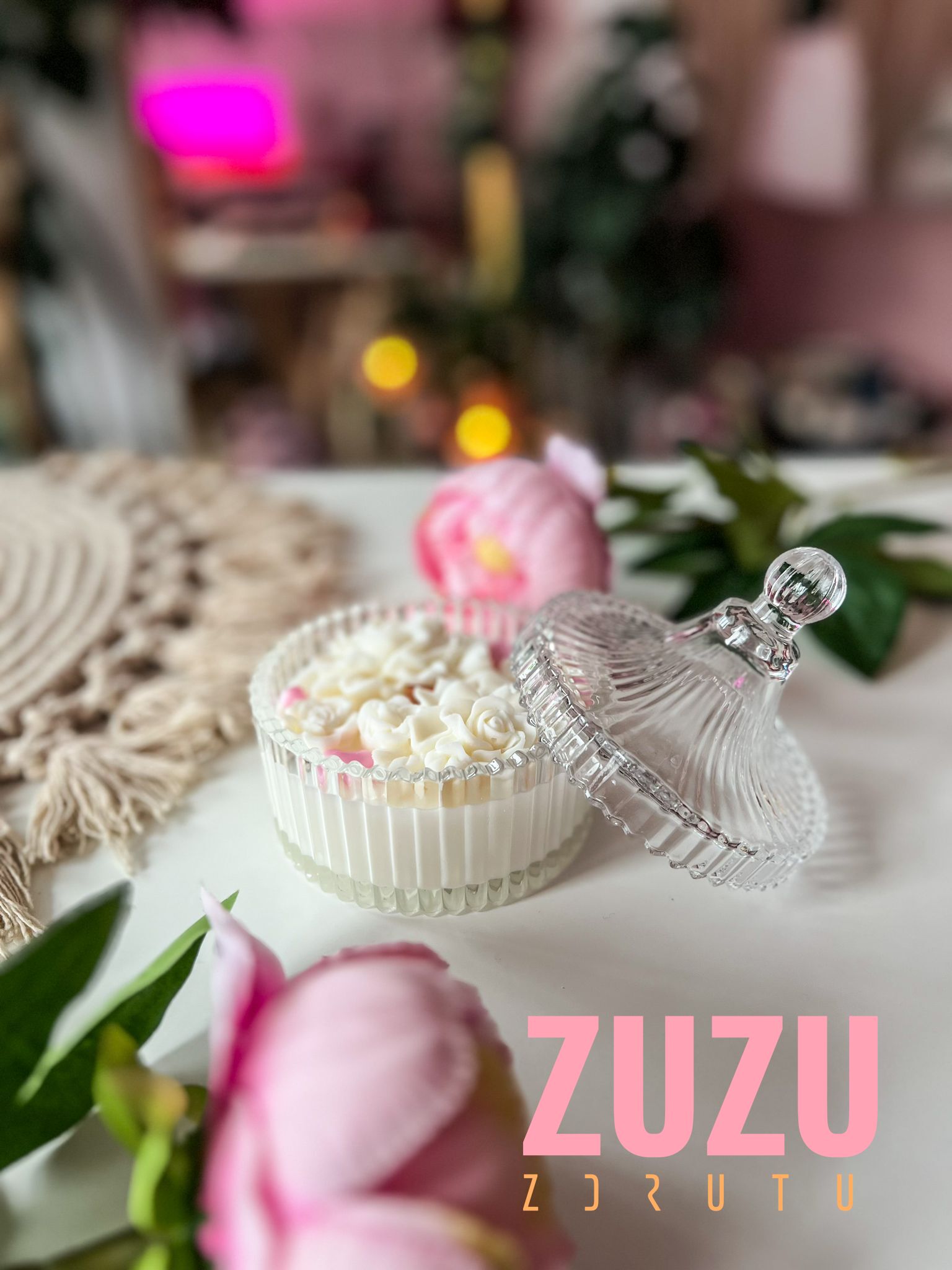 Świeca Kwiaty z Przykrywką Naturalna – wyjątkowa elegancja na każdą okazję